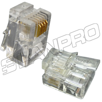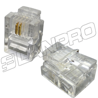 Telephony / CAT3 Gold Plated 6P4C Modular Plug, Two Pairs.