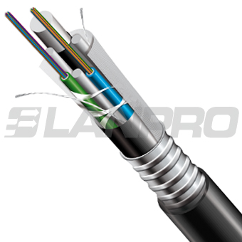 The LP-OC03XX is family of Fiber optic cables that the industry calls an Outside Plant Cable, made sturdy enough for laying directly buried or in underground conduits, ducts or in aerial/lashed deployment. Loose tube style, optical fiber cable with non-metallic central strength member of FRP and moisture barrier inner sheathed. Cable protected by a corrugated steel armoring and black PE over sheath for protection against mechanical damage and termite or rodent attack, suitable for direct buried or aerial application. Tubes contain optical single-mode or multimode fibers color coded as per color coding scheme. |