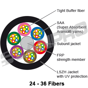 protection. * Lightweight, flexible design simplifies installation. * Tight buffer provides individual fiber protection. * Tight buffered fibers are easy to handle and strip for field connectorization. * Good mechanical and temperature performance. * Good crush resistance water blocking and flexibility. * Lightweight, all dielectric self-supporting (ADSS) construction is ideal for use near electrical power lines. * LSZH or LSZH-3 or LSZHFR or LSHF FR rated jacket with UV protection for light outdoor use. Applications